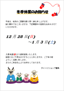 〇年末年始営業のおしらせ〇