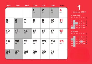 1月の営業日
