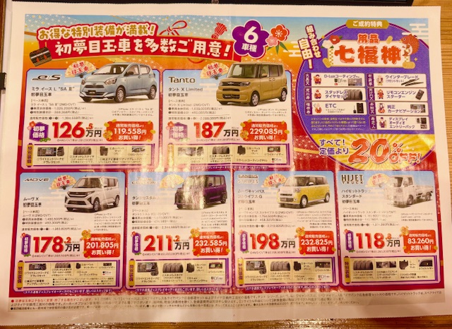 他にも用品定価20%OFFやご成約特典、目玉車など初夢フェアだけのお得がいっぱいです![]()