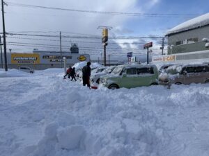 大館店でも毎朝、みんなで力を合わせて雪かきを頑張っています