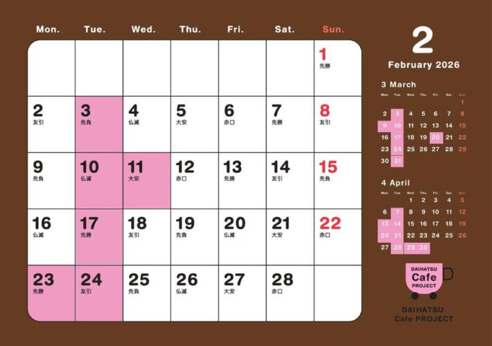 2月は毎週火曜定休日の他 11日(水) 23日(月)も休日とさせていただきます。