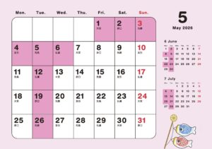 5月の営業日はカレンダーのようになります。