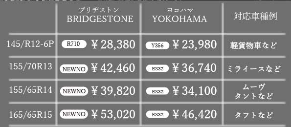 ※上記価格には「タイヤ組替料」「エアバルブ交換料」「タイヤ脱着料」「タイヤ処分料」「ホイールバランス料」「消費税」が含まれます。